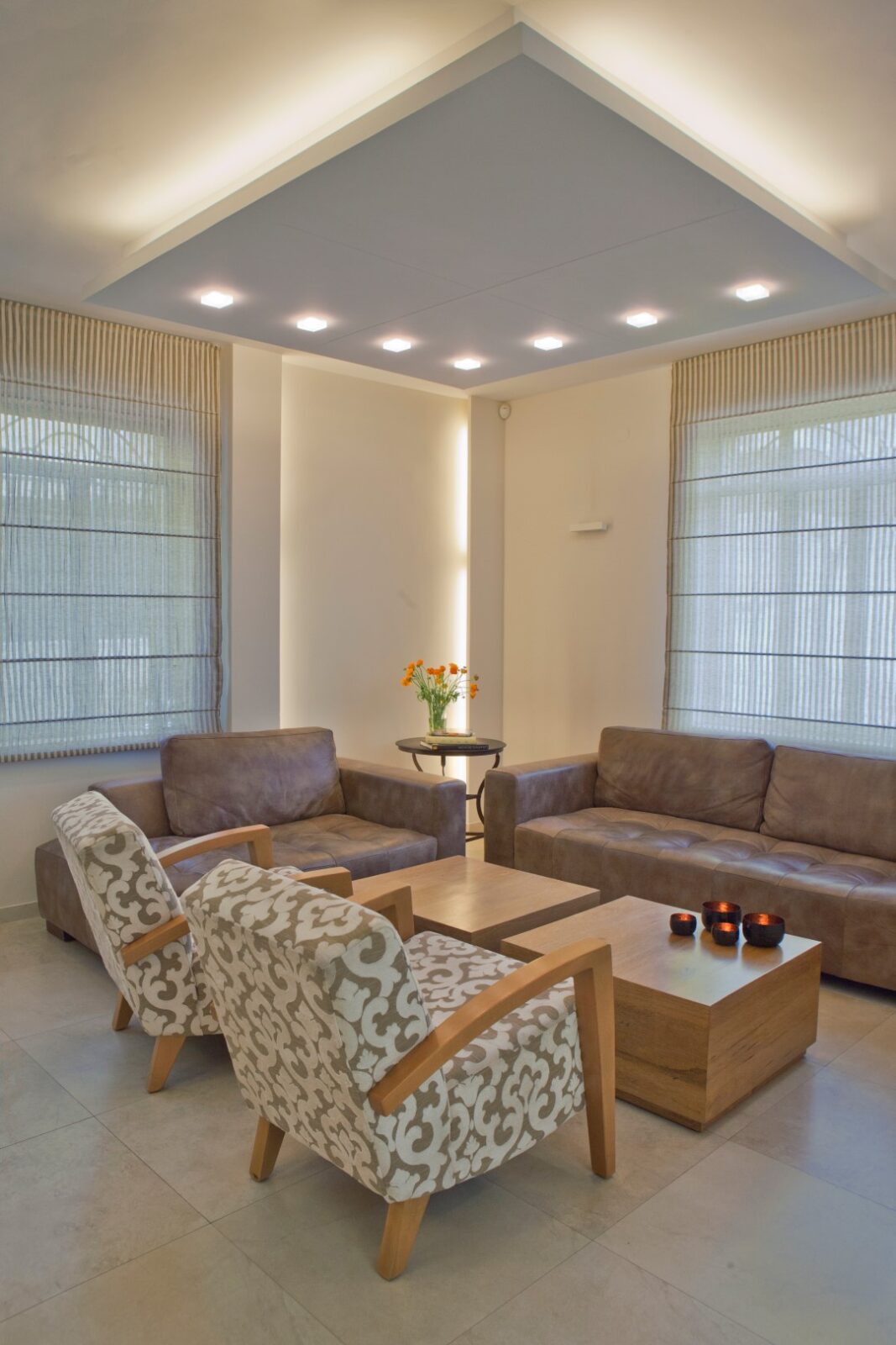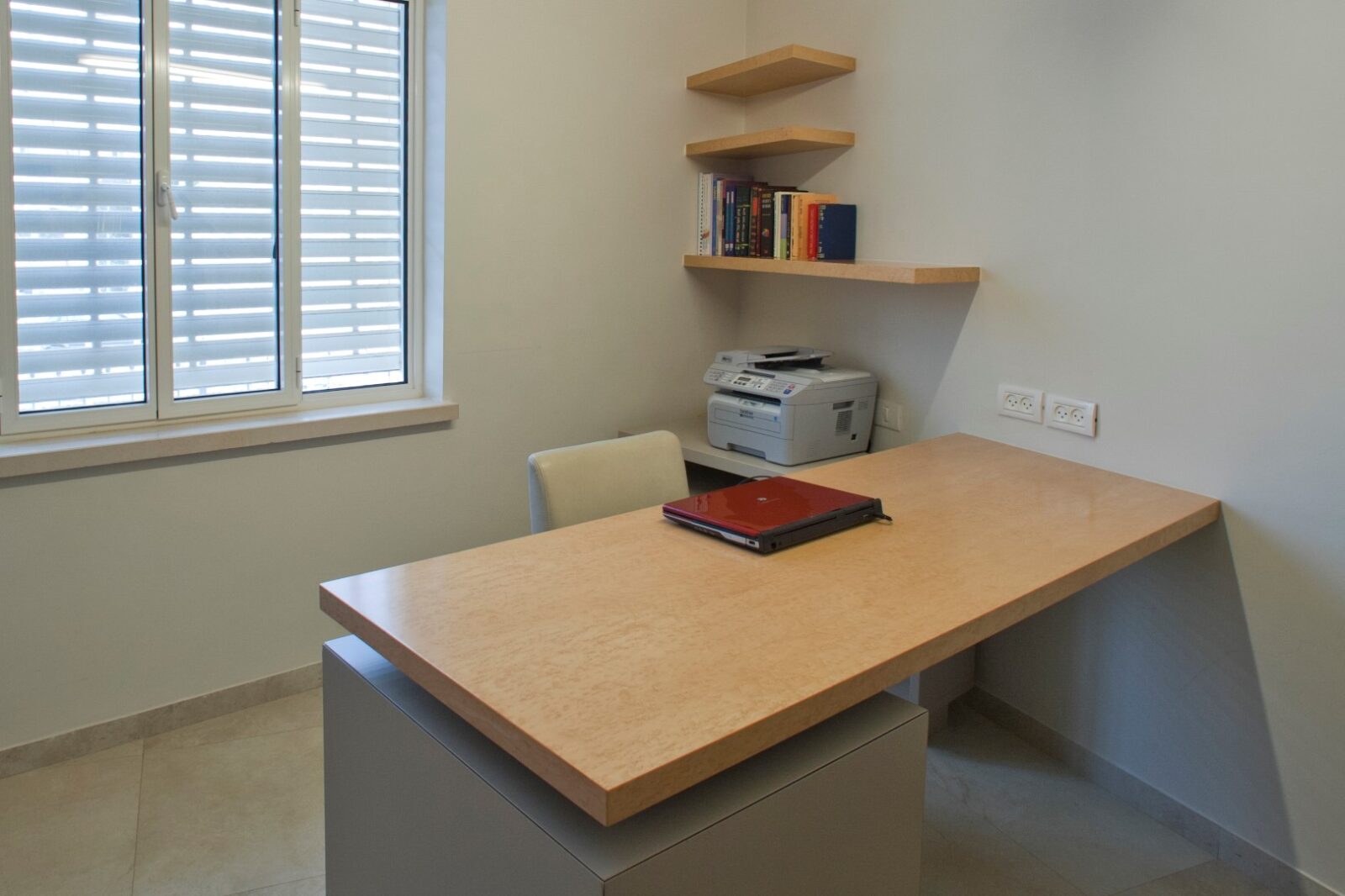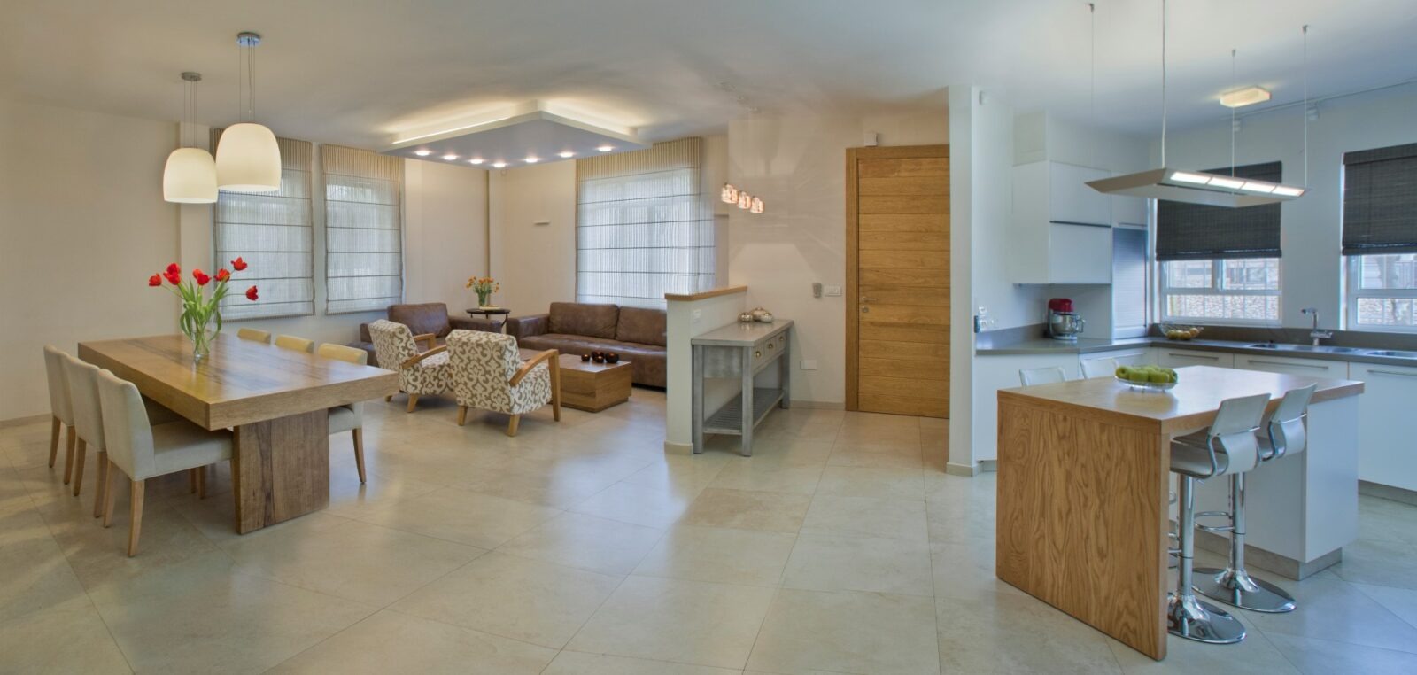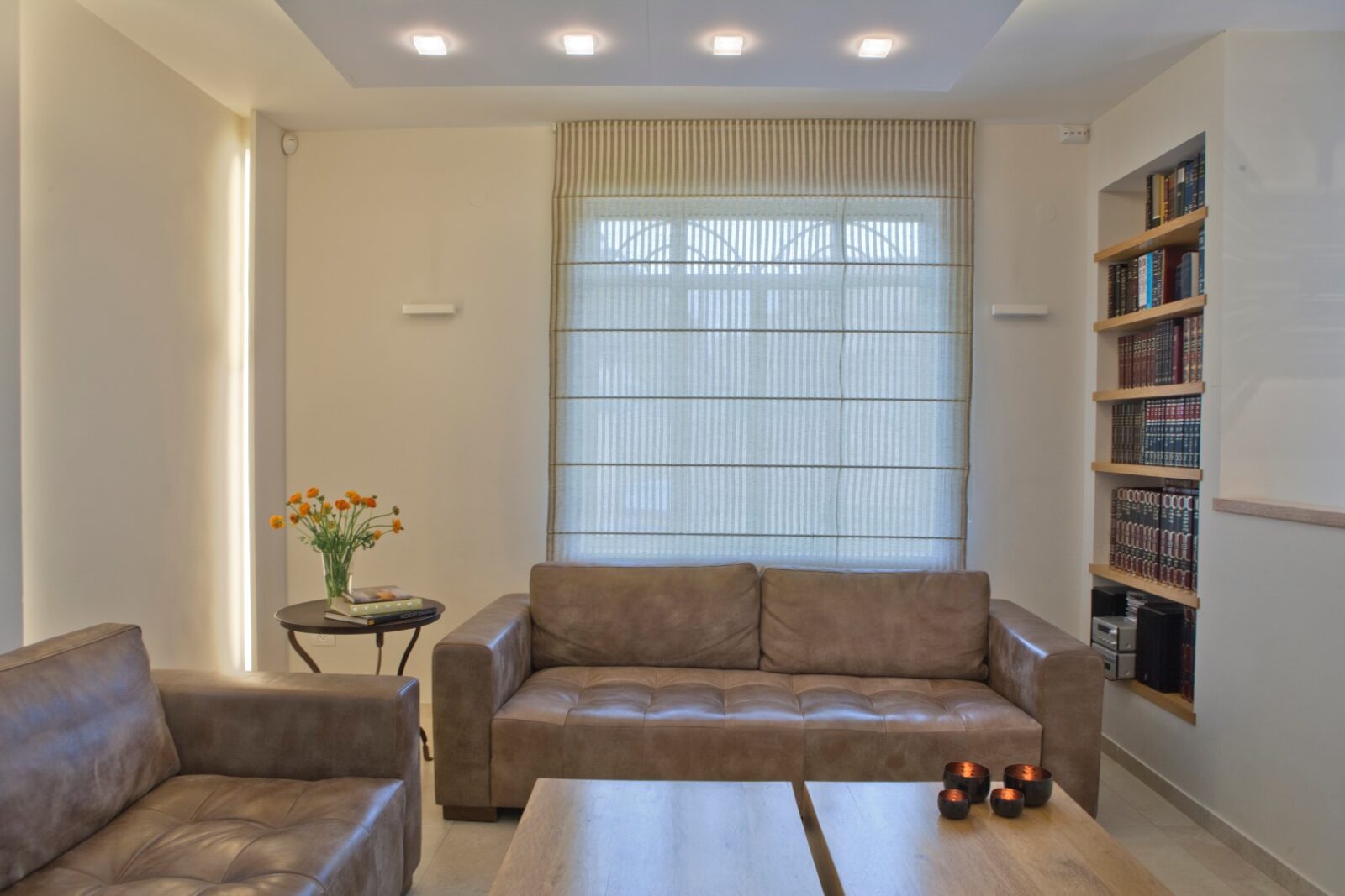 תכנון ועיצוב בית פרטי בירושלים, 200 מ"ר, בעל שלוש קומות עבור משפחה גדולה המארחת תכופות. הבית תוכנן בהתאמה מלאה לדייריו ולבקשתם לבית נעים ופונקציונלי. כדי ליצור מבואת כניסה יפה הופרד החלל בעזרת קיר נמוך. קומת הכניסה תוכננה כך שתכלול את הסלון, פינת האוכל והמטבח באופן כזה שתיווצר זרימה טובה בין הפונקציות. במטבח שבוצע על ידי חברת "המטבח" שולב אי ישיבה מרכזי. גרם מדרגות בעל חלון צר וארוך, מחבר בין הקומות. הדגש בפרוייקט עמד על פתרונות אחסון רבים וחללים נעימים וקלים לתחזוקה המתאימים לארוח תכוף. הבית מאופין בשימוש בצבעוניות בהירה ואחידה ובחמרים טבעיים. הריהוט תוכנן במיוחד, חלקו נרכש בחנות "האסם" וחלקו בוצע על ידי נגר אומן. התאורה שנרכשה מ"קבסו תאורה" מאד מגוונת – מגופי תאורה המפיצים אור חזק ועד גופים המשמשים כתאורת אוירה