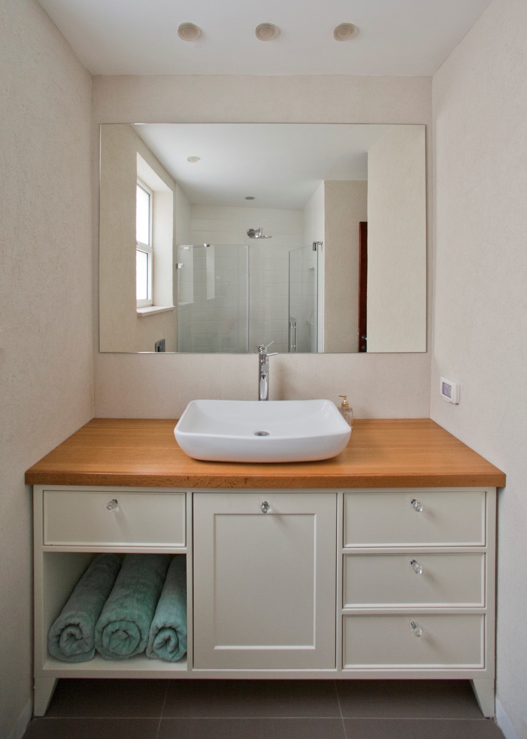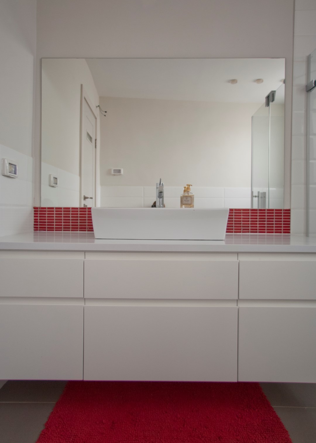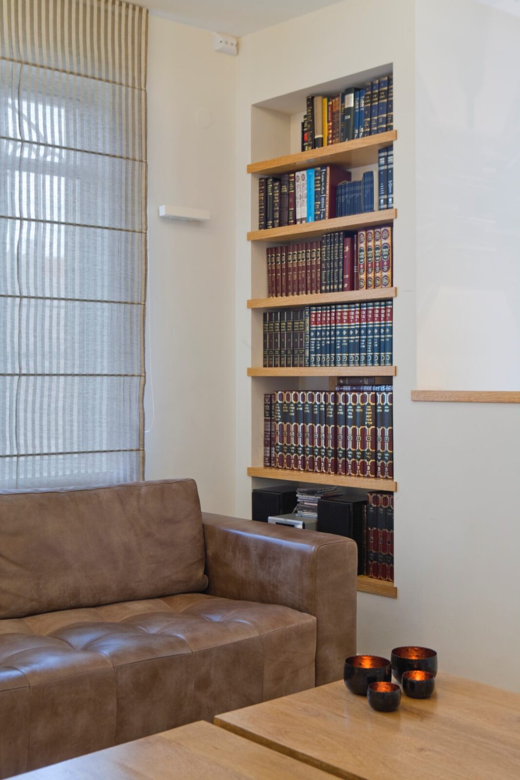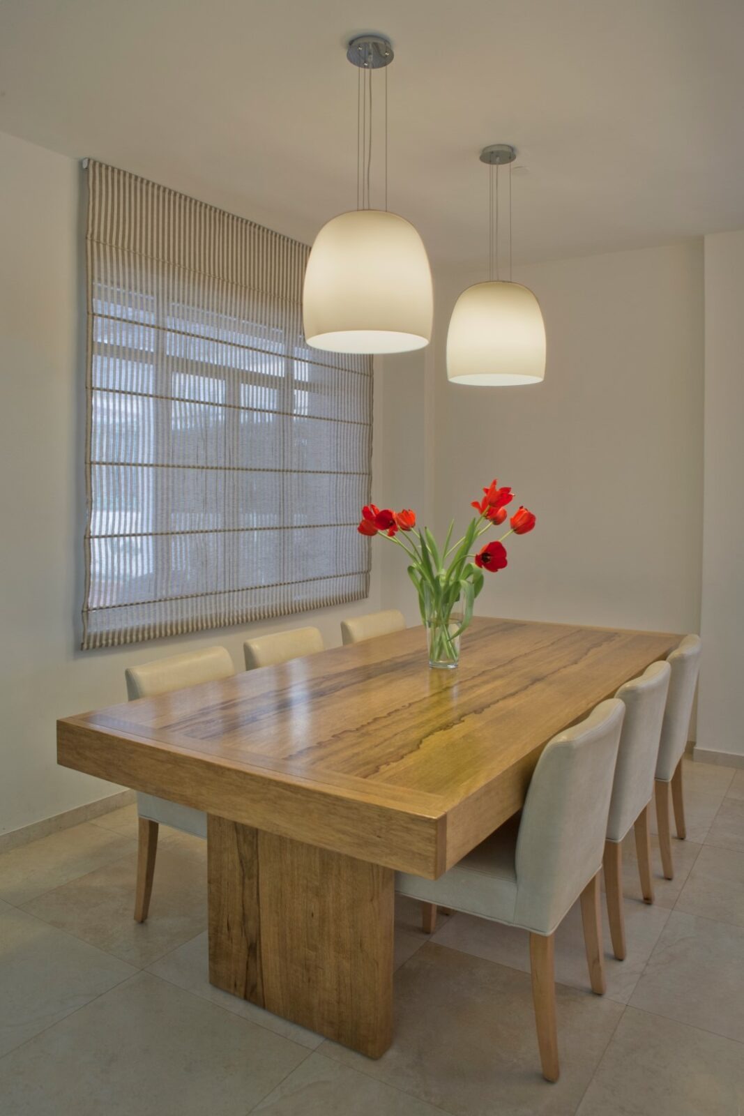 תכנון ועיצוב בית פרטי בירושלים, 200 מ"ר, בעל שלוש קומות עבור משפחה גדולה המארחת תכופות. הבית תוכנן בהתאמה מלאה לדייריו ולבקשתם לבית נעים ופונקציונלי. כדי ליצור מבואת כניסה יפה הופרד החלל בעזרת קיר נמוך. קומת הכניסה תוכננה כך שתכלול את הסלון, פינת האוכל והמטבח באופן כזה שתיווצר זרימה טובה בין הפונקציות. במטבח שבוצע על ידי חברת "המטבח" שולב אי ישיבה מרכזי. גרם מדרגות בעל חלון צר וארוך, מחבר בין הקומות. הדגש בפרוייקט עמד על פתרונות אחסון רבים וחללים נעימים וקלים לתחזוקה המתאימים לארוח תכוף. הבית מאופין בשימוש בצבעוניות בהירה ואחידה ובחמרים טבעיים. הריהוט תוכנן במיוחד, חלקו נרכש בחנות "האסם" וחלקו בוצע על ידי נגר אומן. התאורה שנרכשה מ"קבסו תאורה" מאד מגוונת – מגופי תאורה המפיצים אור חזק ועד גופים המשמשים כתאורת אוירה